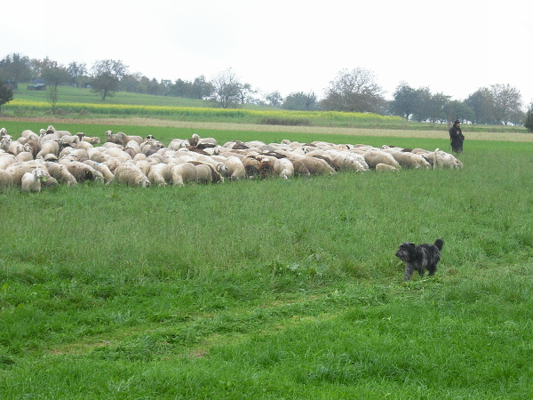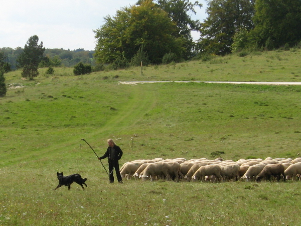Der praktische Teil der Prüfung wird an einer etwa 300köpfigen Schafherde abgenommen.