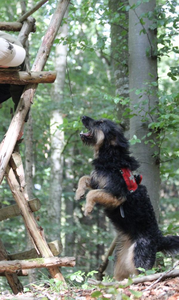 Da der Altdeutsche sehr schnell lernt, ist auch der Rettungshundeführer immer wieder gefordert, eindeutig und konsequent zu vermitteln, welches Verhalten das Richtige ist und jede Unkorrektheit sofort zu erkennen und zu unterbinden.