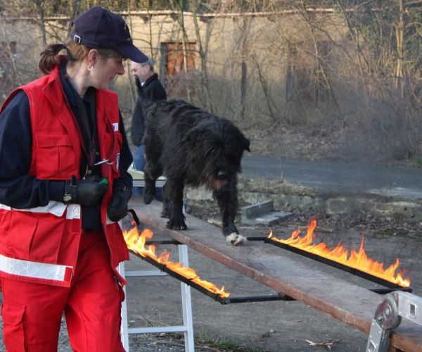 Bei der Ausbildung zum Rettungshund gilt es natürlich auch, den einerseits positiven Eigenschaften, doch auch rechtzeitig die „Zügel“ anzulegen: nur zu gerne selbstständig, muss dem Altdeutschen klar gemacht werden, wer der Chef des Einsatzes ist, damit gewährleistet ist, dass der Hund systematisch ein bestimmtes Gebiet durchstöbert und auch jederzeit zurückgerufen werden kann.